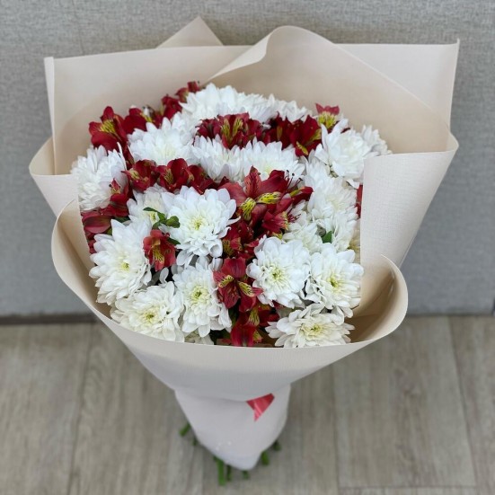 Невероятно красивый и вкуснопахнущий букет. Яркий и в то же время элегантный. Цветы стоят долго, букет свежий, поэтому долго радует глаз