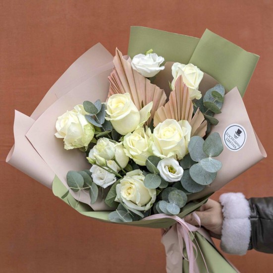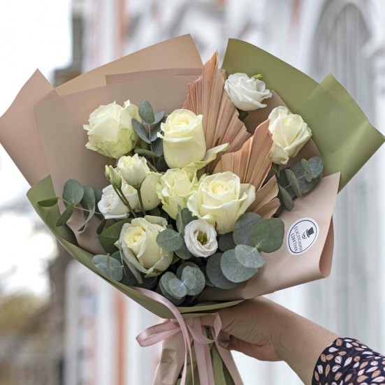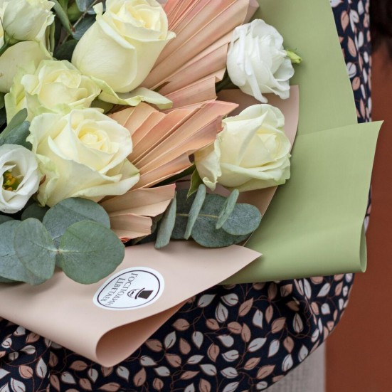 Невероятно красивый и вкуснопахнущий букет. Яркий и в то же время элегантный. Цветы стоят долго, букет свежий, поэтому долго радует глаз