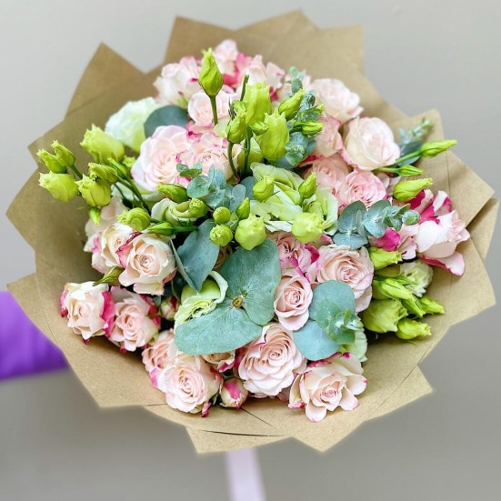 Невероятно красивый и вкуснопахнущий букет. Яркий и в то же время элегантный. Цветы стоят долго, букет свежий, поэтому долго радует глаз