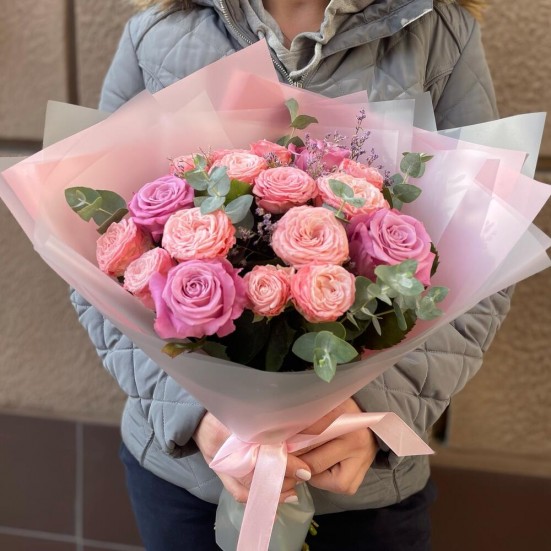 Невероятно красивый и вкуснопахнущий букет. Яркий и в то же время элегантный. Цветы стоят долго, букет свежий, поэтому долго радует глаз