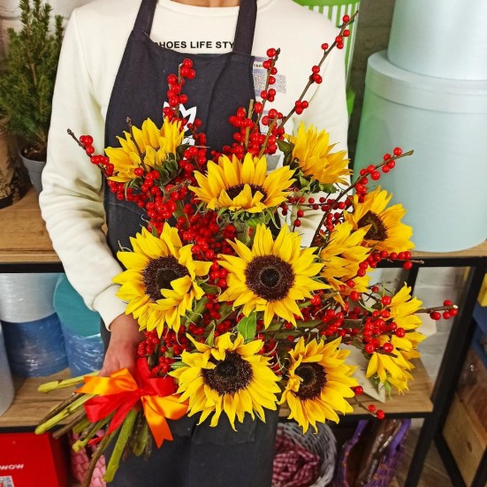 Невероятно красивый и вкуснопахнущий букет. Яркий и в то же время элегантный. Цветы стоят долго, букет свежий, поэтому долго радует глаз