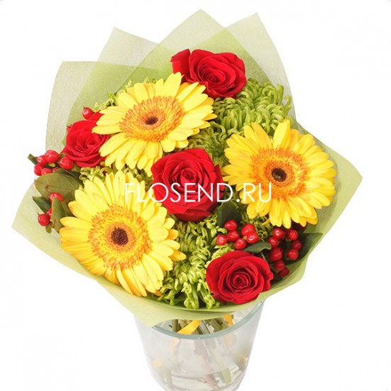 Невероятно красивый и вкуснопахнущий букет. Яркий и в то же время элегантный. Цветы стоят долго, букет свежий, поэтому долго радует глаз